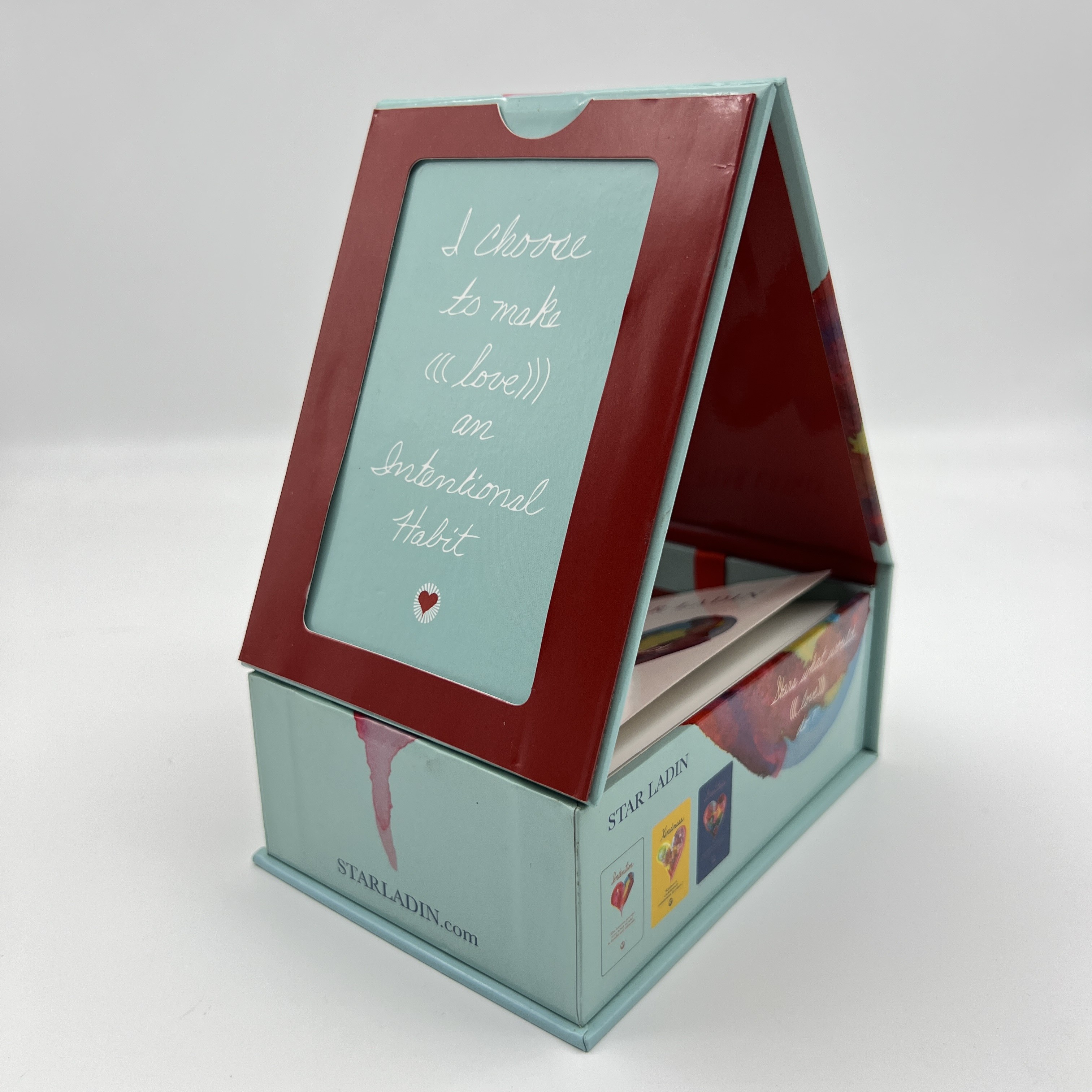 Les cartes: 350 gsm de C2S / 4c +revêtement UV brillant+ le linge est gravé des deux côtés. Couverture du livret: 250 gsm C1S/ 4c+ lampe brillante x0c Texte du livret: 105 gsm mat art/ 4c x 4c boîtes: 157 gsm art brillant au dessus2.5 mmles panneaux /4c +éblouissantelam avec doublure (similaire au papier d'emballage). (Conception d'un boîtier de 4 pièces avec une boîte à plateau collée, un ruban rouge est ajouté avec une extrémité enterrée entre le boîtier de 4 pièces et la boîte à plateau pour faciliter le retrait des cartes) (toute l'impression est avec écran 200 lpi) |